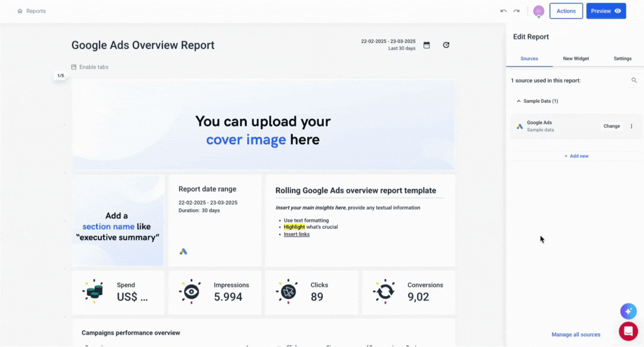 And if they needed to add a new source mid-report, they could do it directly from the report editor—no backtracking required.